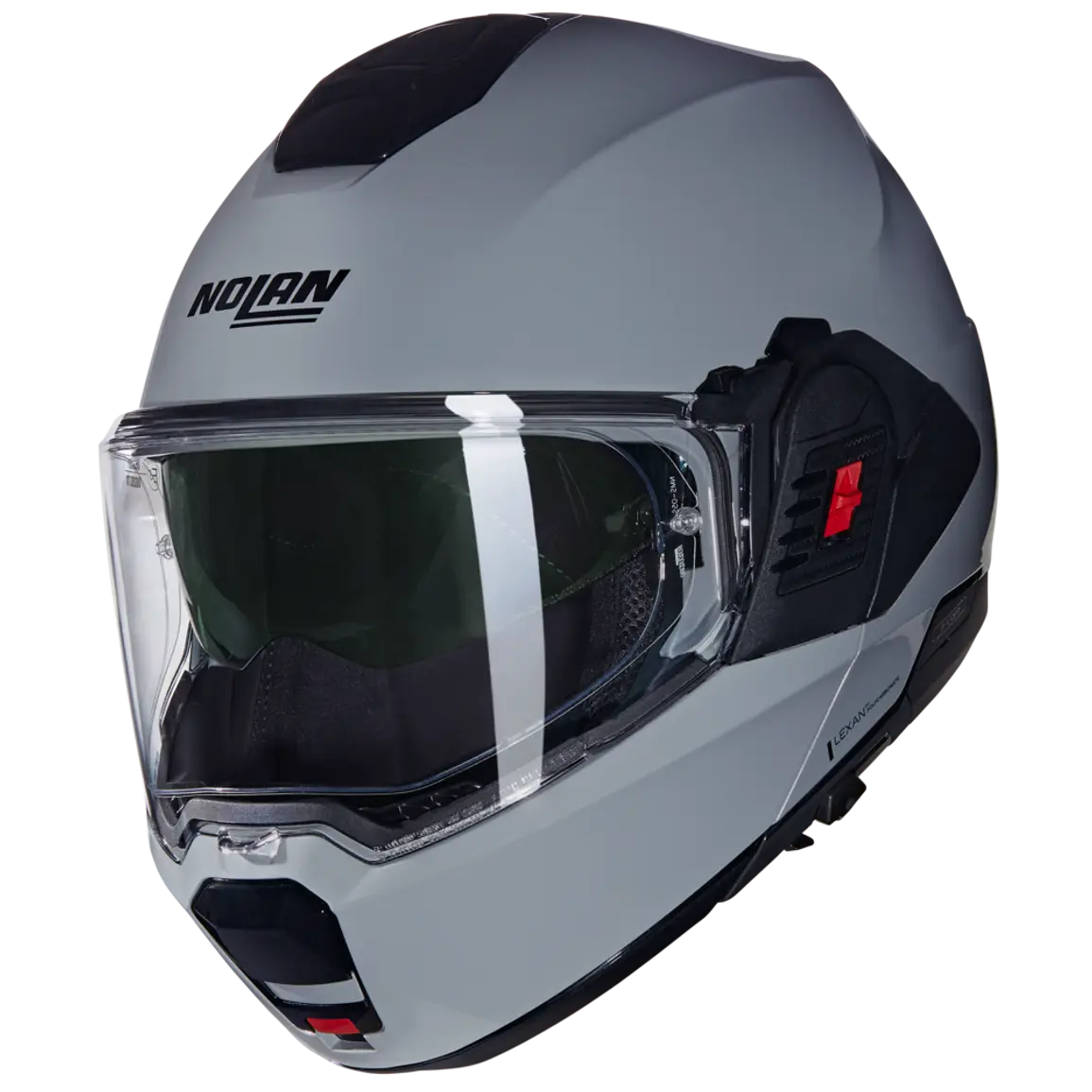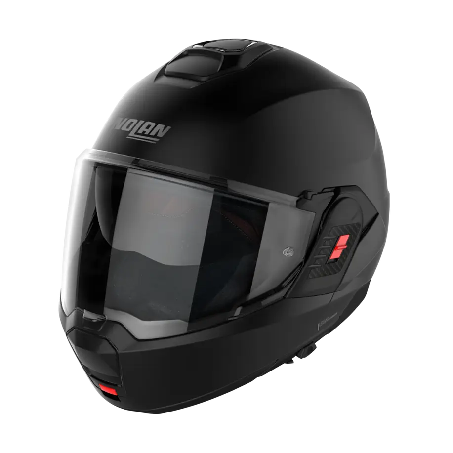 Imbottitura interna Top Clima Comfort con tessuti ecosostenibili, sistema LPC (Liner Positioning Control) per regolazione calzata, NERS (Nolan Emergency Release System) per rimozione rapida dei guanciali, sistema Eyewear Adaptive per utilizzatori di occhiali.