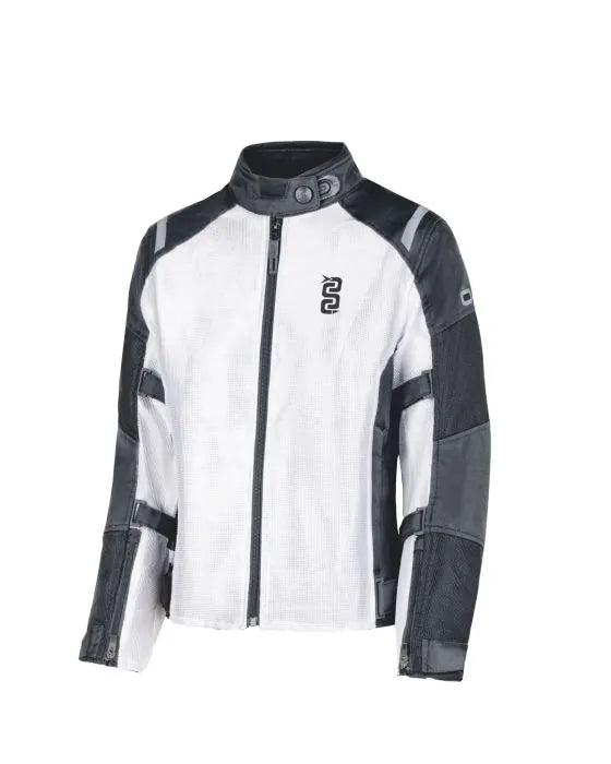 La OJ Flow è una giacca estiva ventilata in poliestere traforato, certificata EN 17092-4:2020 Classe A, pensata per uso urbano e touring leggero con massima traspirabilità e protezioni certificate.