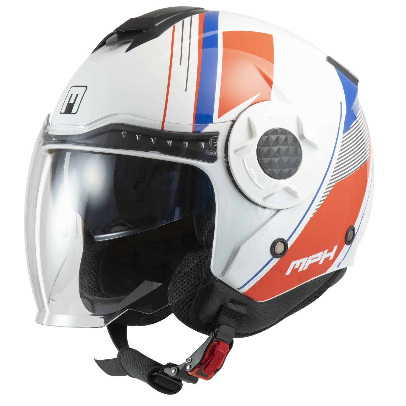 Casco moto jet DJ MPH - bianco/blu/rosso